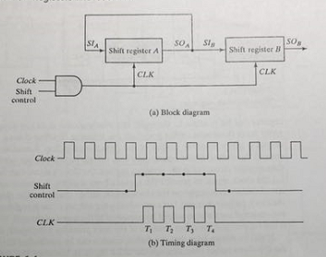 串行寄存器,数据转移。图中功能为,控制信号打开4个时钟周期,寄存器A的数据复制到B寄存器中,并且A寄存器的数据不变。