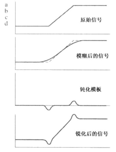 - 目的:锐化处理的主要目的是突出灰度的过渡部分。补偿轮廓,增强图像的边缘及灰度跳变的部分,使图像变得清晰。