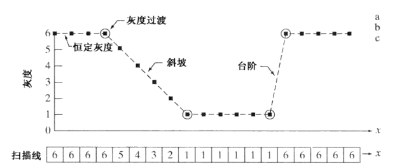 如下图所示,图像在过度的时候,在图像增强的过程中,边缘的斜坡是我们不想看到的,这里需要想办法把他区分出来。