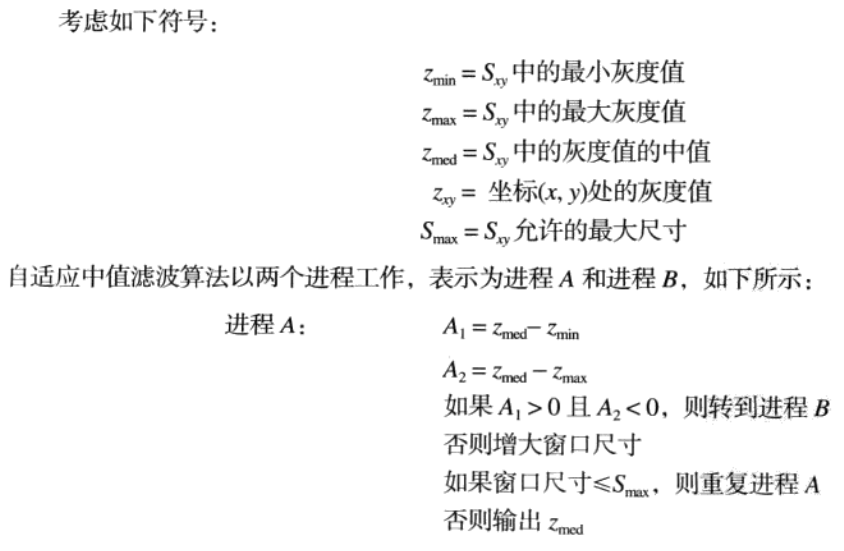 - 说明:进程A目的是为了找到椒盐脉冲,进程B是为了平滑非脉冲噪声时试图保留细节