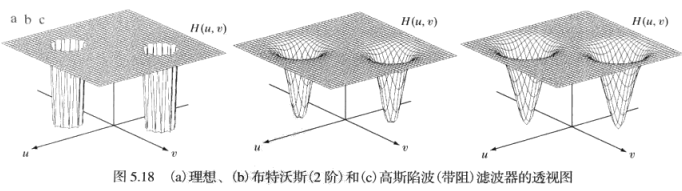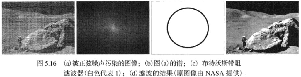 用频率域滤波可以有效的分析并滤除周期噪声,其基本概念是傅里叶变换中,周期噪声在对于频率干扰除的频率处,以集中的能量脉冲形式出现,可以选择一个频域滤波方法分离这些噪声