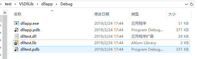 }编译运行,如果提示缺少dll文件,请将dlltest.dll和dlltest.lib复制到项目生成的exe文件同一个目录下,如下图: