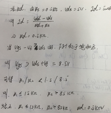 确定使图3.2中的JFET工作的电阻R1,R2,Rd的值,使其工作在饱和区域,并且Id = 5 mA,Vds = 5V(10分)