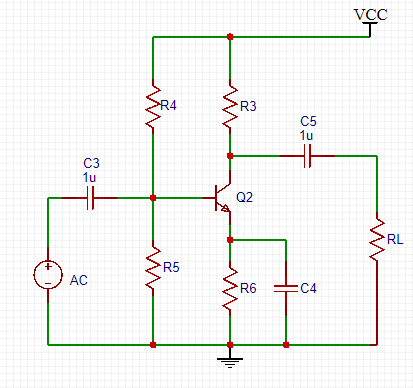 答:$R_4$和$R_5$对VCC进行分压,使得三极管始终处于放大状态。通过调整$R_4$和$R_5$的电阻比例或者单独调整$R_3$电阻都可以对静态工作点进行调整。器件功能跟图一类似,以下对新增器件功能进行解释:
